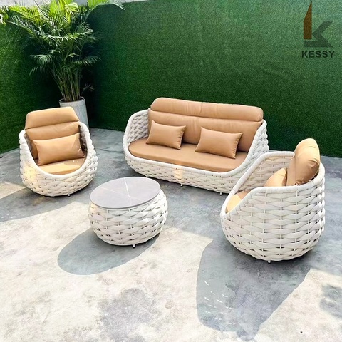 Luxe Hotel Buitenmeubilair Lounge Sofa Stoel Touw Geweven Waterdichte Conversatiestoel Binnenplaats Balkon Patio Tuin Sofa Set